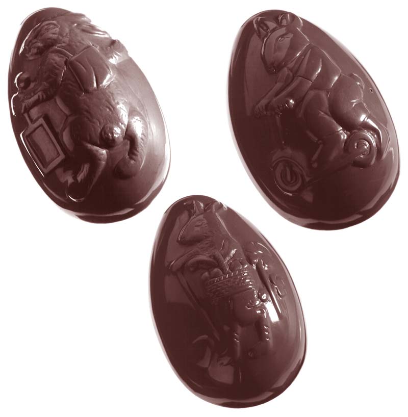 Chocolate World Frame Moulds – CW2198 – Egg Hare 74mm 8 Fig. – 60gm – 74x48x26mm