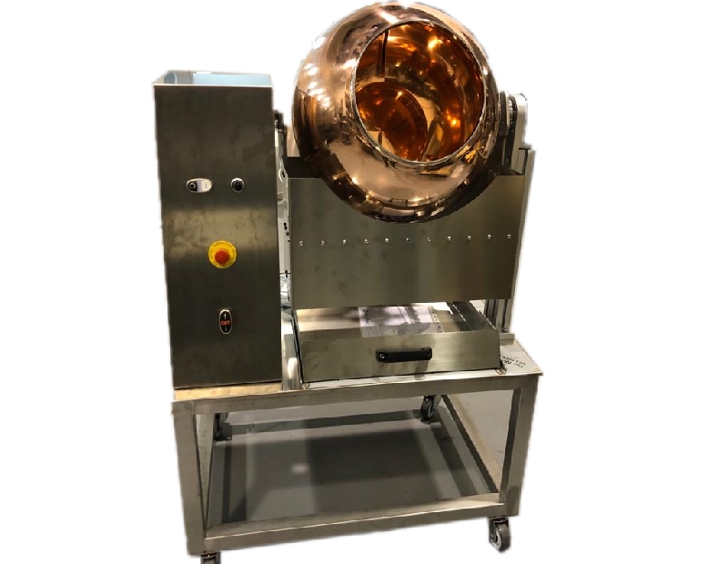 Sturdy stainless steel structure This machine has been designed to achieve “perfection” in the execution of the product and its relative brightness. Among the countless pralining machines on the market for small productions, Rollermac Group s.r.l. it is therefore positioned at the Top for structure, materials used and quality of the finished product. The copper vessel can work in any position/inclination according to the processing requirements.
