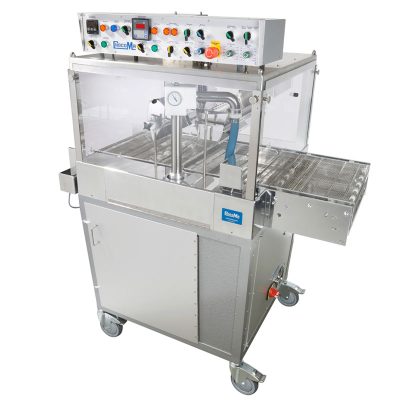 E220 is made of stainless steel and designed for easy cleaning. The entire enrobing section can be taken off the machine for cleaning.